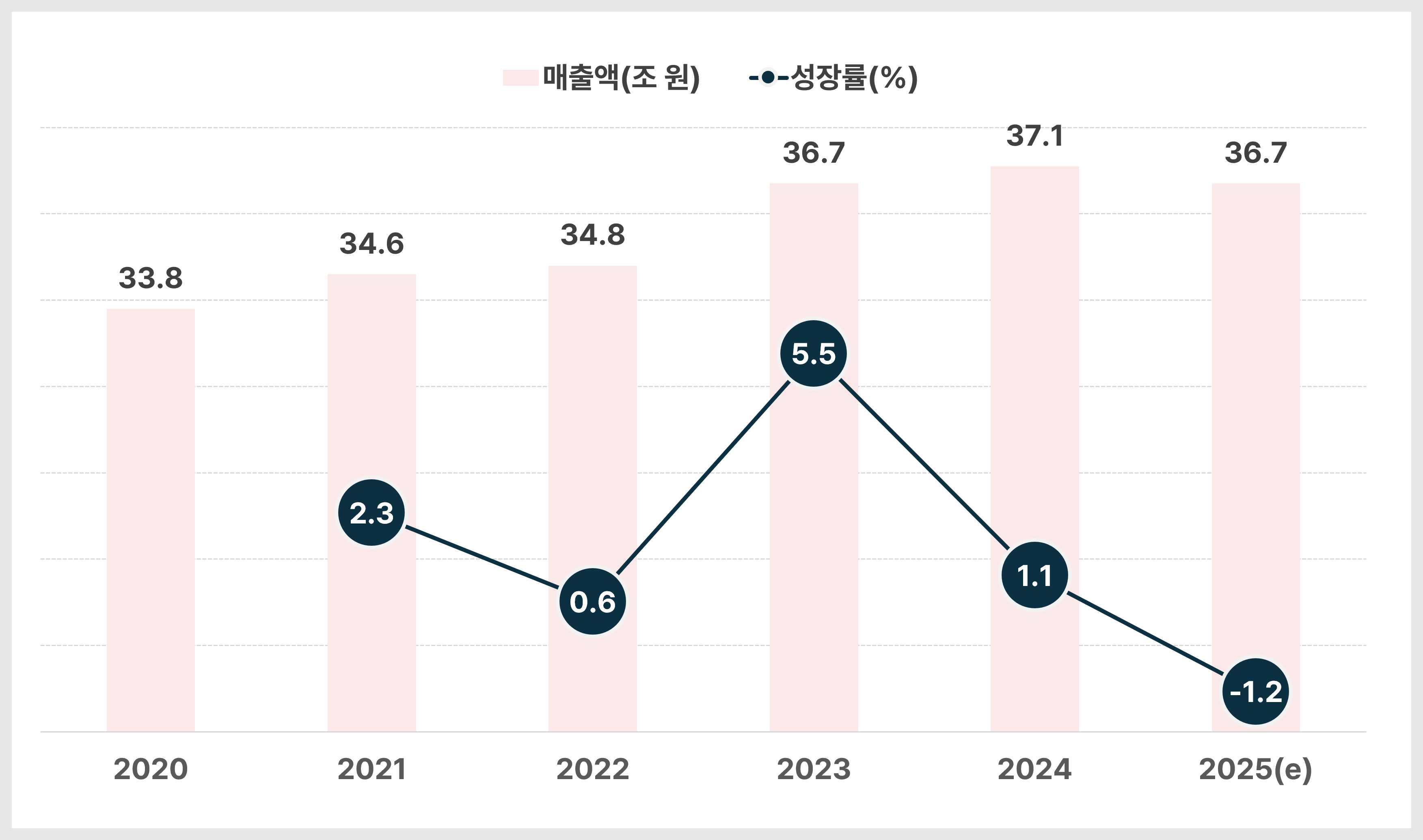 - 그림 5 : 대형마트 연도별 매출 규모 및 성장률