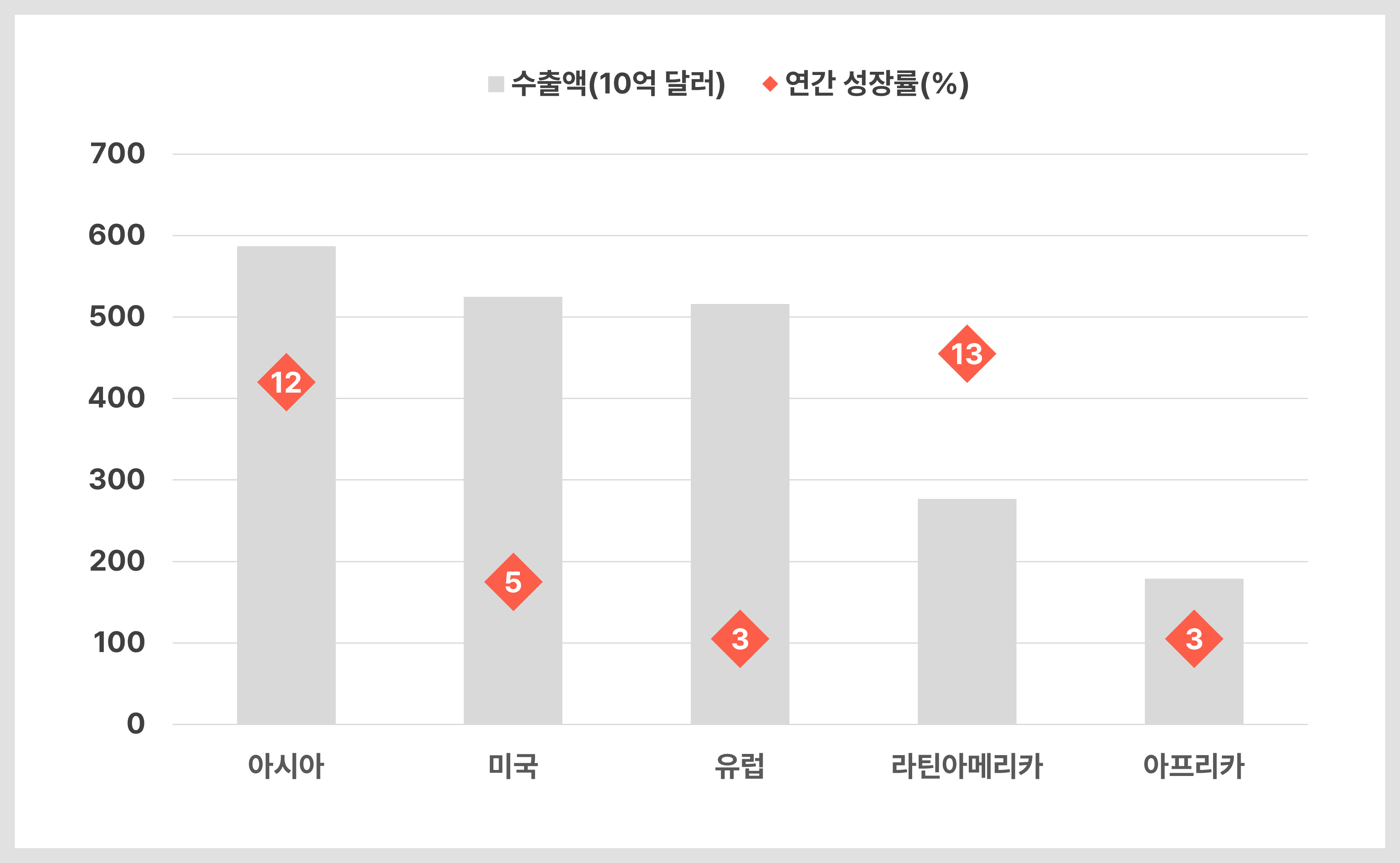 - 그림 1 : 2024년 대륙별 중국 수출 규모